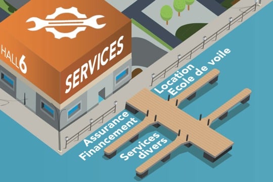 Le hall des services : financement, assurance, location, entretien... Prenez contact avec tous les prestataires pour naviguer sereinement